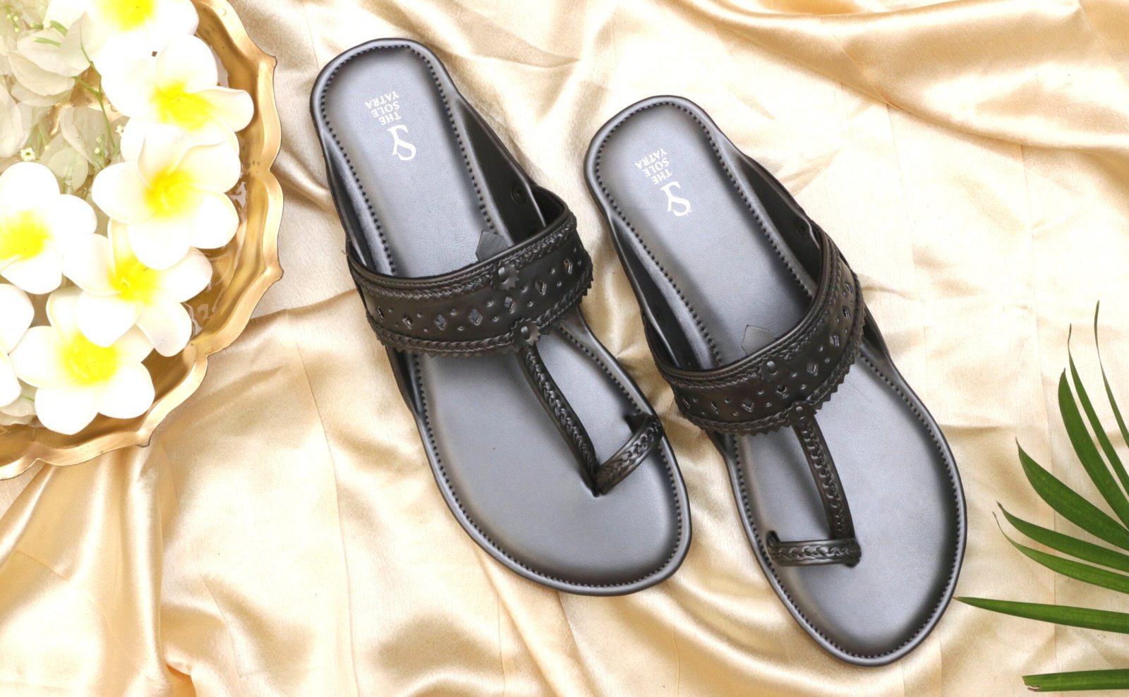Shimmer grey DIVA TITAN GREY Kolhapuris are crafted from vegan PU with hand-finished detailing. Featuring cushioned footbed and textured outsole, these flats ensure all-day comfort. Ideal for urban minimal-luxury fashion or ethnic styling.